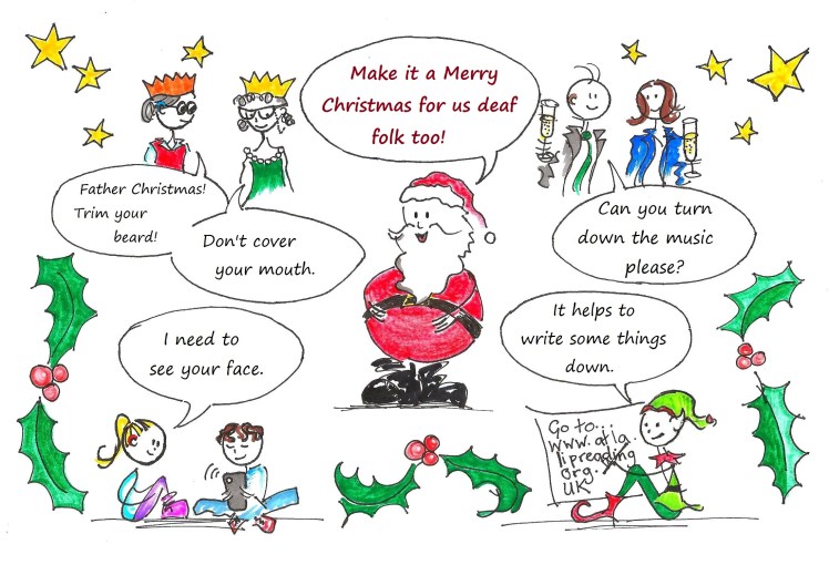 The card gives advice to Santa and others to make sure deaf and hard of hearing people can join in Christmas fun! A pack of ten is available online for £4.99 from The Association of Teachers of Lipreading to Adults.
